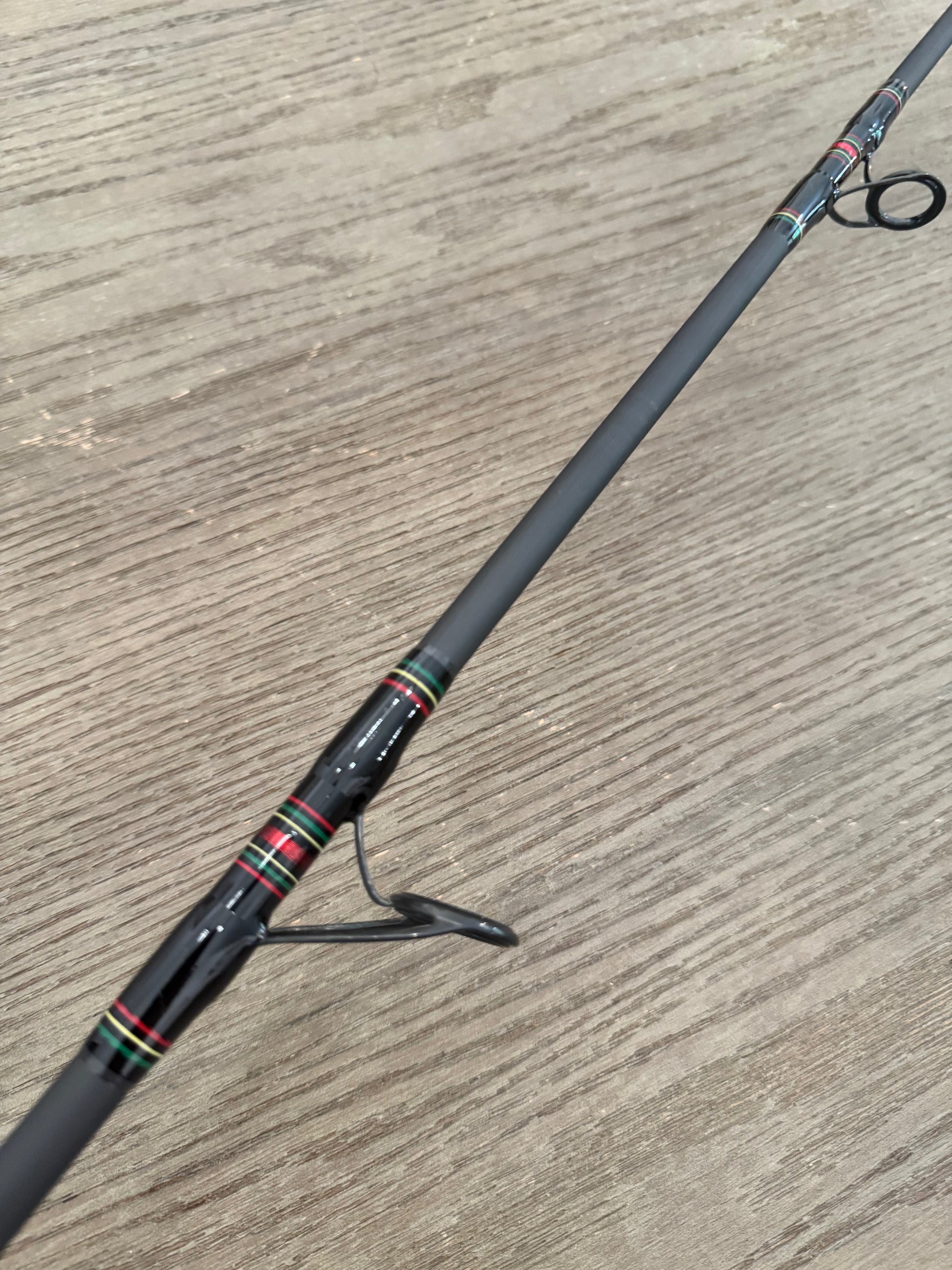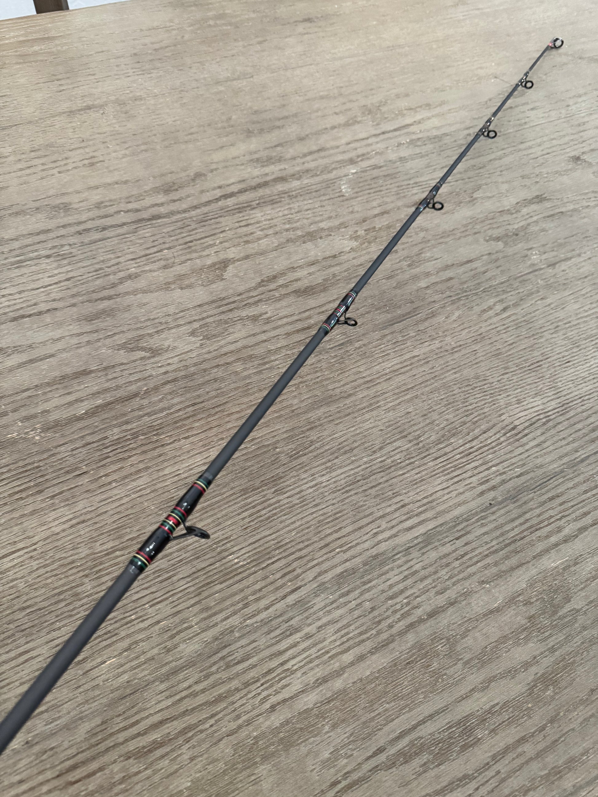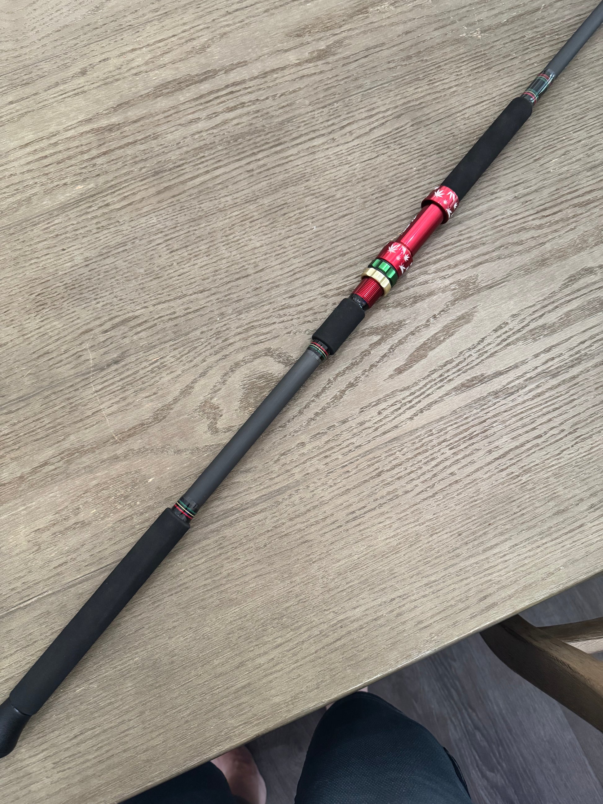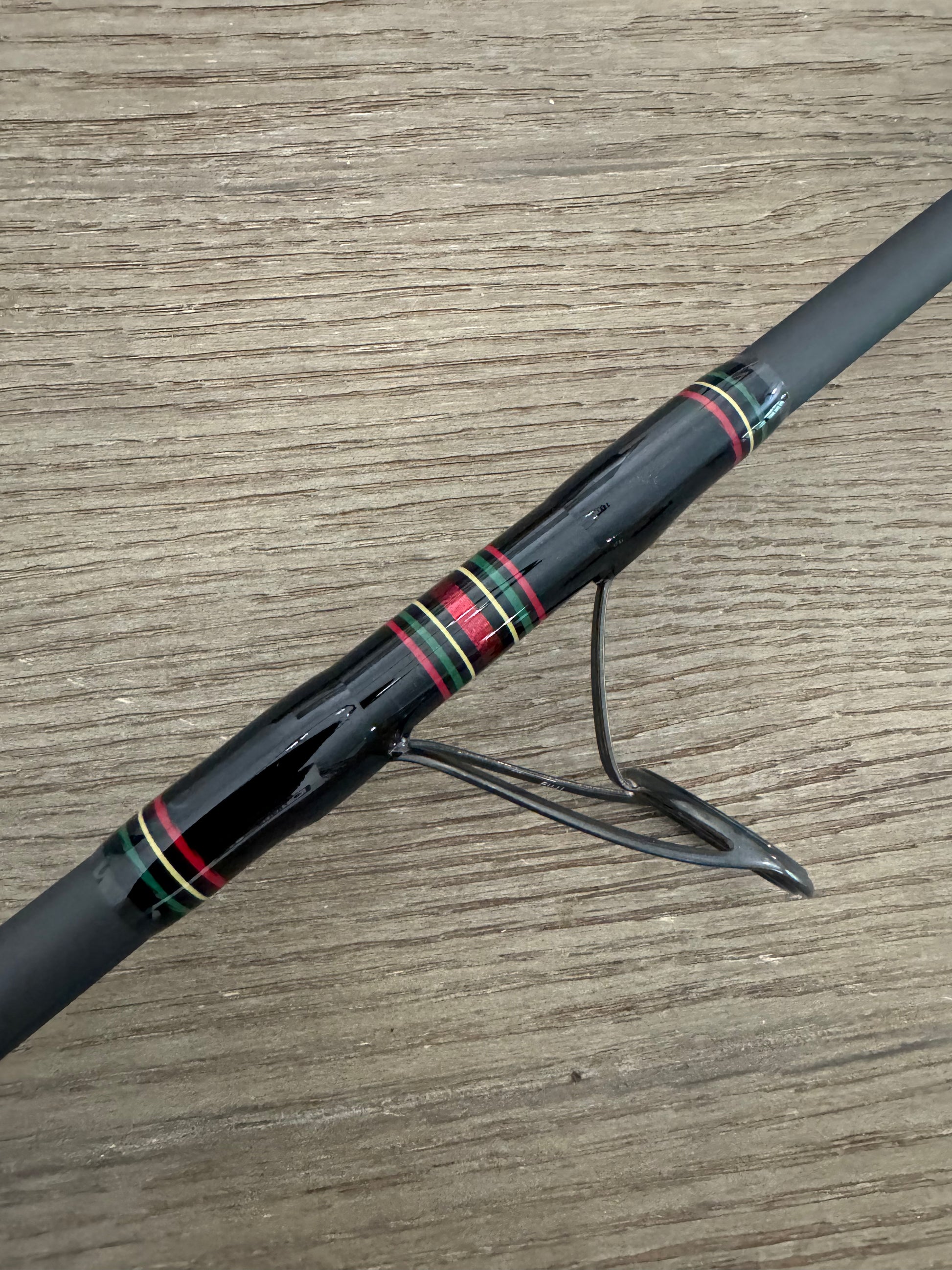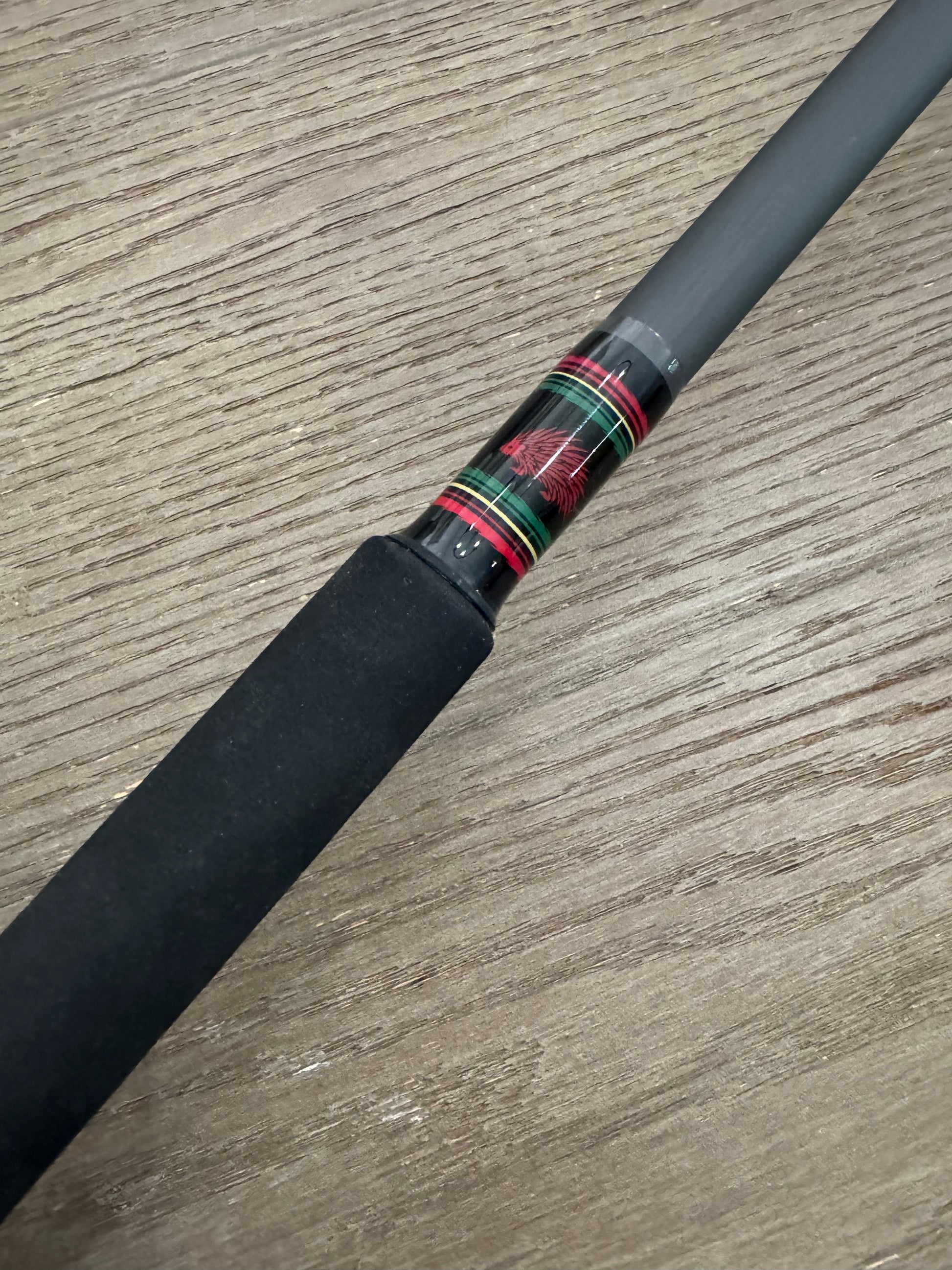 This rod features a red aluminum seat with matching red metallic center trim in the guide underwraps.